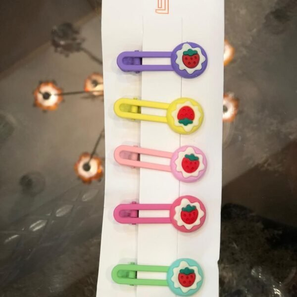 five colorful children's snap hair clips