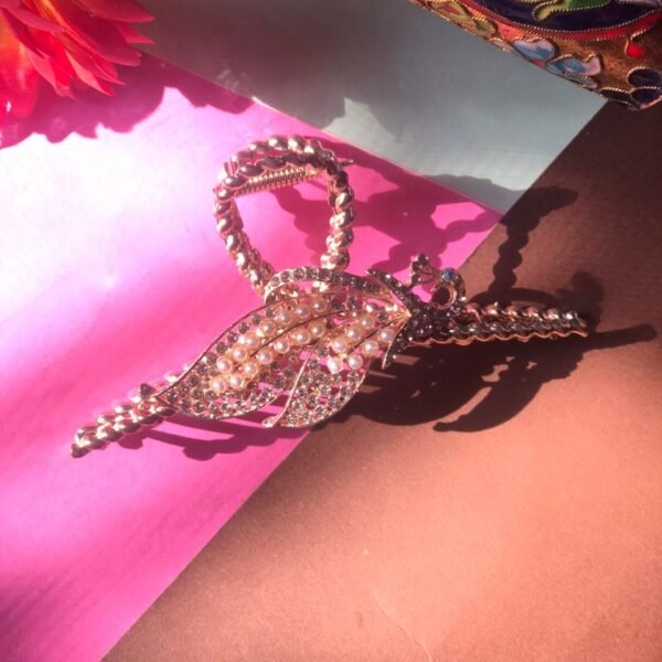 bird-shaped brooch with faux pearls and crystals hair clip